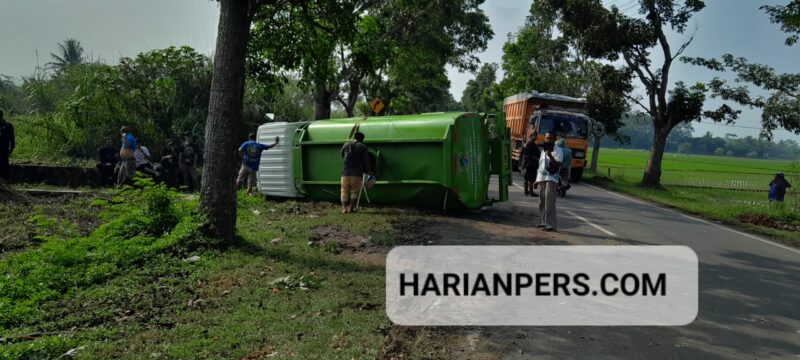 Diduga Mengantuk Truk Pengangkut Air Oleng dan Terjungkir