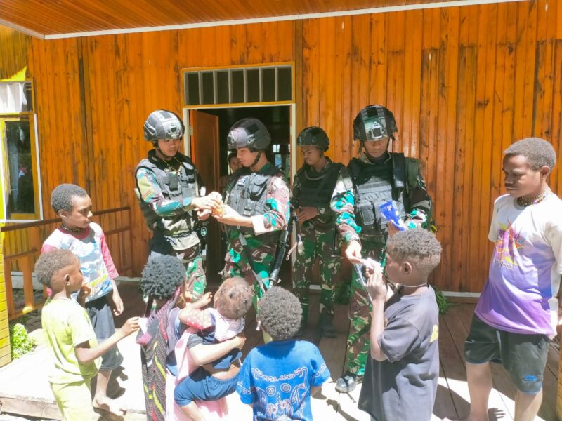 TNI Pembawa Senyum, Setiap Hari Minggu Satgas Mobile Raider 300 Bagikan Cemilan Kesenangan Masyarakat Papua