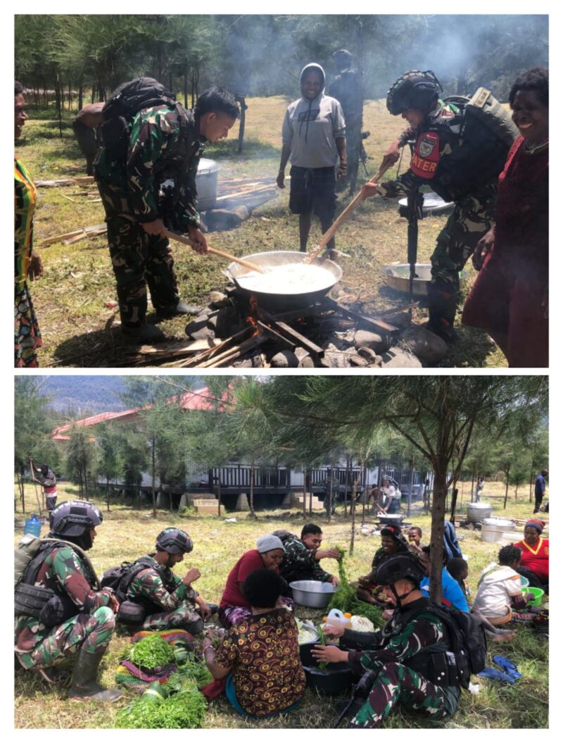 Namun, kebaikan tak berhenti di situ. Satgas Mobile Raider 300 Siliwangi terus bergerak dengan mengajak masyarakat sekitar untuk bergotong royong pembersihan Selokan sekitaran gereja dan melakukan kegiatan memasak bersama dan makan bersama. Momen ini menjadi bukti nyata bahwa TNI tidak hanya berada di tengah-tengah masyarakat saat dibutuhkan, tetapi juga berusaha mendekatkan diri dengan cara-cara yang berarti.