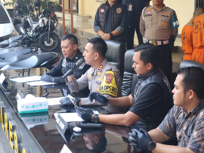 Cianjur : Polres Cianjur menggelar konferensi pers pengungkapan kasus tindak pidana pencurian di minimarket yang terjadi di 11 tempat kejadian perkara (TKP) di wilayah hukum Polres Cianjur, konferensi pers tersebut dipimpin langsung oleh Kapolres Cianjur AKBP Rohman Yonky Dilatha, S.I.K., M.Si., M.H. dan berlangsung di depan Gedung Satreskrim Polres Cianjur, Selasa (29/10/2024).