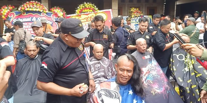 CIANJUR – Puluhan orang pendukung Wahyu ramzi merayakan kemenangan dengan mencukur rambutnya hingga gundul untuk kemenangan Pilkada Cianjur 2024.