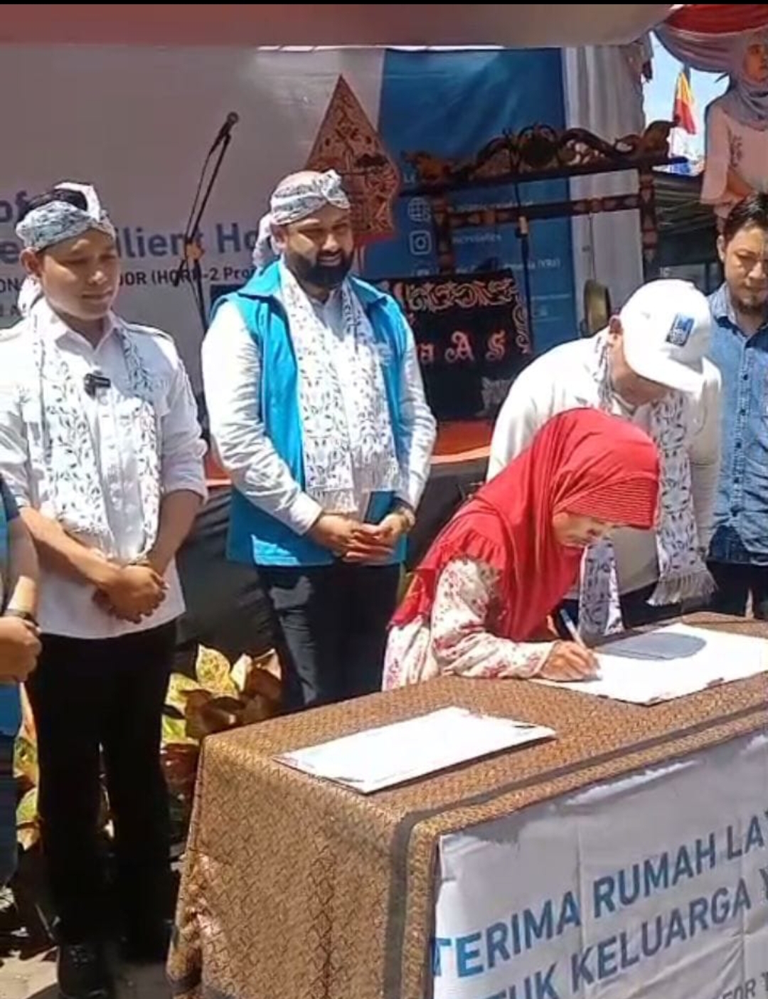 Sebagai penutup acara, Bupati secara simbolis menyerahkan kunci rumah kepada beberapa penerima manfaat.