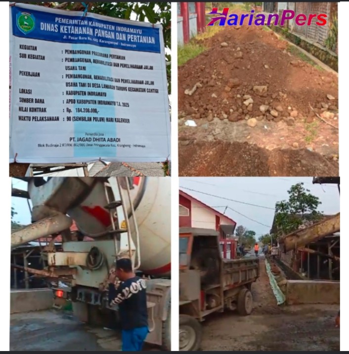 HarianPers || INDRAMAYU – Kegiatan Pembangunan, Rehabilitasi Jalan Usaha Tani di Desa Lamaran Tarung Kecamatan Cantigi, Kabupaten Indramayu APBD TA 2025 dengan anggaran Rp.184.208.000. dari Dinas Ketahanan Pangan dan Pertanian (DKPP). Minggu (10/8/2025).