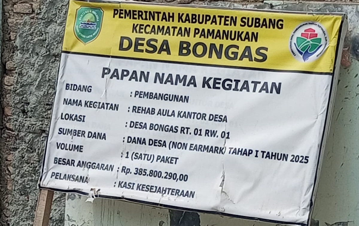 Pemerintah Desa bongas kecamatan Pamanukan kabupaten Subang telah langgar aturan Dana Desa,dimana penerapan anggaran Dana Desa untuk fisik tidak boleh d pihak ke 3 kan.harus dengan swakelola.