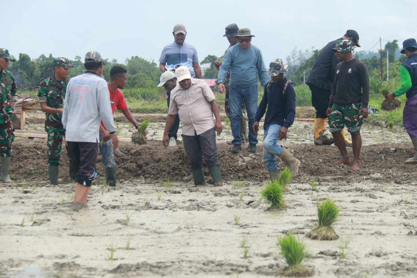 Turut hadir diantaranya Ketua DPRK Keerom Kanisius Kango, Kadistrik Skanto Selamet Wiododo, Danyon TP 815/WGT Letkol Inf Syafiuddin Hasan, Kapolres Keerom, petani dan lainnya.