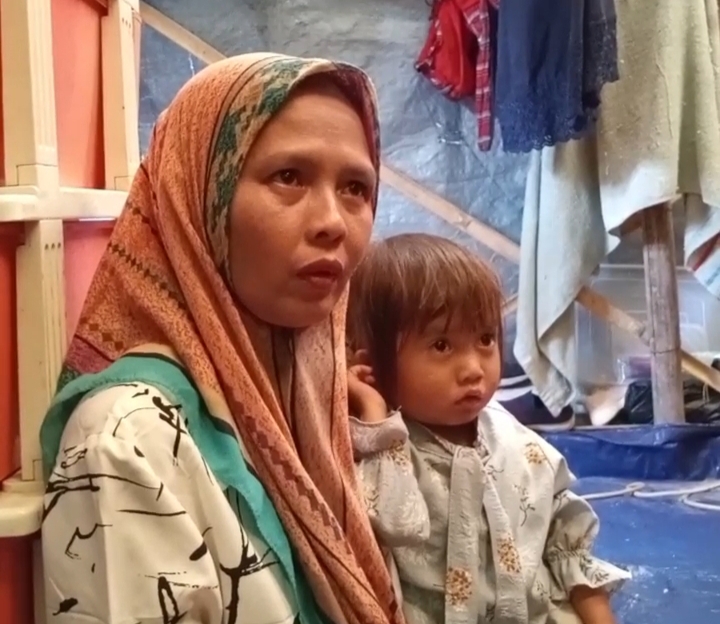 Kondisi huntara yang serba terbatas itu memaksa keluarga Yayah dan ketiga anaknya berjuang melawan terpaan cuaca ekstrem setiap hari. Saat terik, panas menyengat tak tertahankan. Di malam hari, dingin menusuk tulang. Hujan pun menjadi mimpi buruk tersendiri bagi mereka.