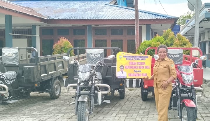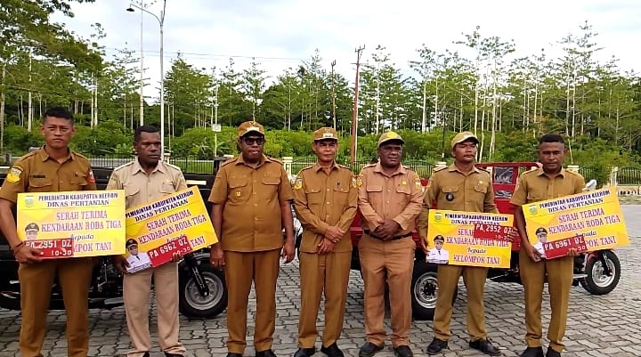 Pada kesempatannya Bupati Piter Gusbager menyampaikan bahwa kenderaan roda tiga yang diserahkan merupakan pengaadan dari Dinas Pertanian Kabupaten Keerom.