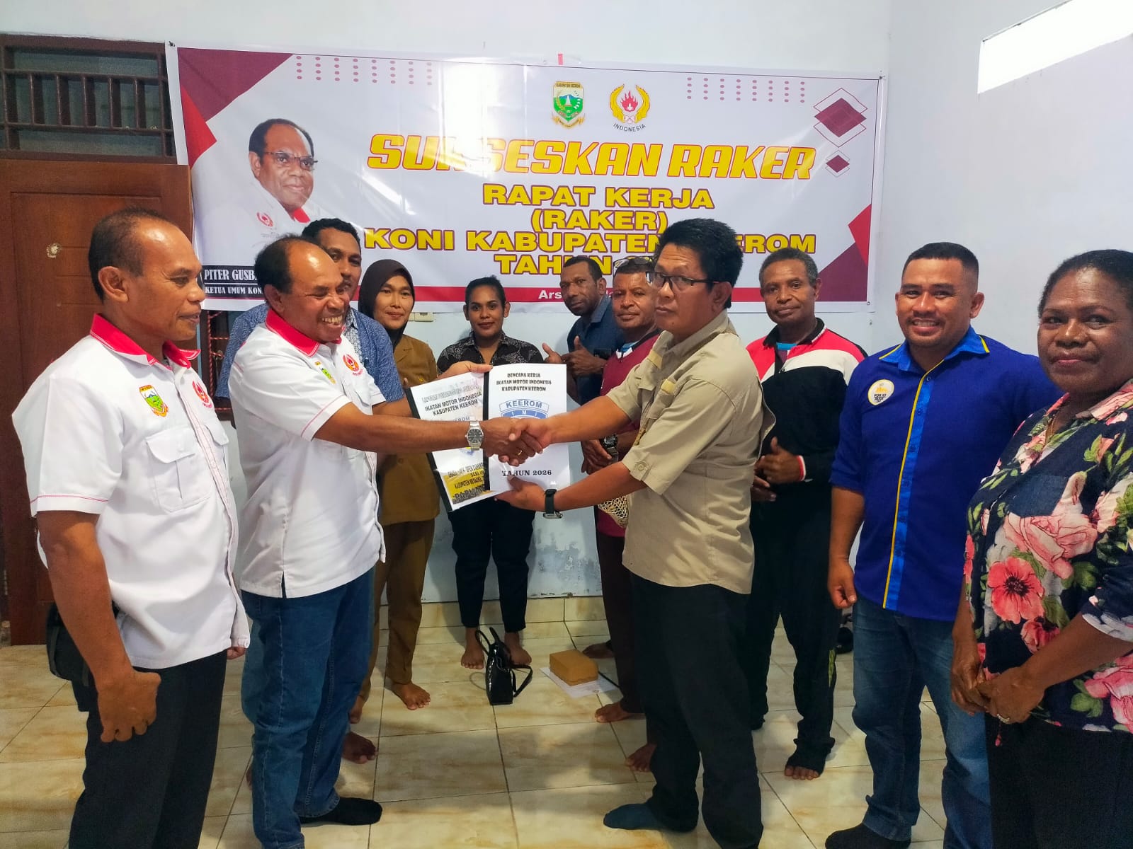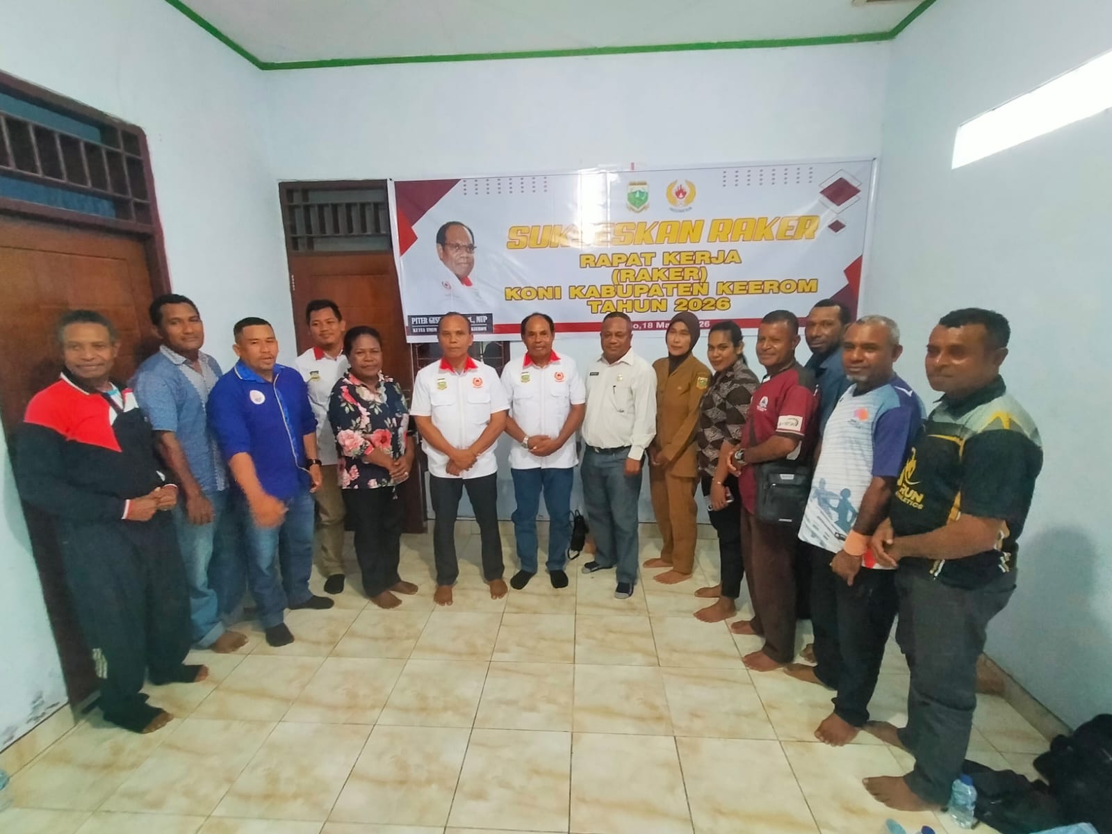 Kegiatan kali ini dipimpin oleh Ketua Harian KONI Keerom, Nathan Bonay dan Sekretaris KONI Keerom, Zainudin Wowotubun, dilaksanakan di Kantor Sekretariat KONI Keerom, kawasan Arso Swakarsa, Kampung Asyaman, Distrik Arso, Kab Keerom.