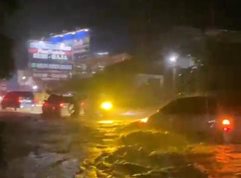 Banjir yang merendam badan jalan hingga setinggi paha orang dewasa itu terjadi setelah hujan dengan intensitas tinggi mengguyur kawasan tersebut sejak sore hingga malam hari.