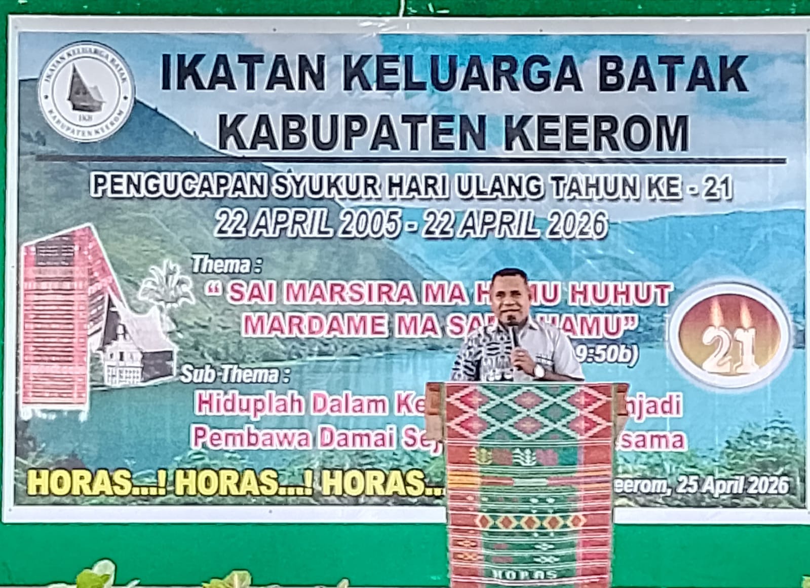 Harianpers.com // Keerom Ikatan Keluarga Batak (IKB) se-Kabupaten Keerom merayakan hari ulang tahunnya yang ke-21, acara ini berlangsung di Gedung Pramuka Jalan Drs. Celsius Watae Kampung Asyaman, Arso, (25/4/26).