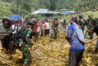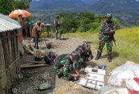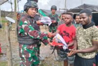 Harian Pers //Satgas Mobiel Raider 300 Siliwangi Menyalurkan Bantuan Sosial (Bansos) yang diberikan oleh Pangdam III/Siliwangi dan Bupati Ilaga ke Kampung Kelanungin, Distrik Ilaga,…