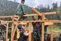 HARIAN pers //Satgas Mobile Raider 300 Siliwangi membantu membuatkan kandang babi untuk Bapak Klasis Enius Ganie Tabuni di Kampung Mayuberi, Distrik Ilaga Utara, Papua….