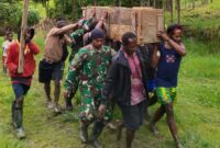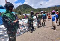 Harian Pers | Satuan Tugas Mobile Raider 300 Siliwangi melakukan pengawalan ketat dalam proses pembagian 40 ton beras di Distrik Sinak, sebuah upaya untuk…