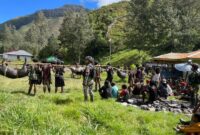 Harian Pers | Satgas Mobile Raider 300 Siliwangi yang bertugas sebagai Tombak Keamanan di Distrik Sinak terutama di Bandara, Kabupaten Puncak, Papua, saat ini…