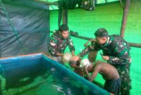 Harian Pers // Edukasi dan aplikasi yang diterapkan kepada anak kecil yang dilakukan oleh Yonif Raider 300/ Brajawijaya, Pratu Beby Kalala rutin dalam memandikan…
