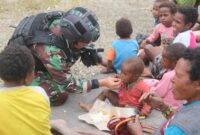 Harian Pers | Kedekatan Satgas Mobile Raider 300 Pos Pintu Jawa terhadap Anak-anak Papua yang dilakukan Pratu Gifari sebagai orang tua angkat. Hal tersebut…