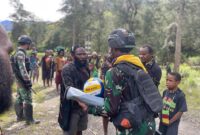 Harian Pers | Pos Sinak Kout Satgas Mobile Raider 300 Siliwangi beri bantuan makanan berupa Paket Nasi Bungkus kepada Korban kelaparan dari Distrik Ndugume…