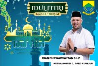 Ketua Komisi D Dian Purwawiwitan S.I.I., DPRD Kabupaten Cianjur Mengucapkan Selamat Hari Raya Idul Fitri 1446 H. Allahumma ballighna ramadhan, wa balligh ramadhan lana….